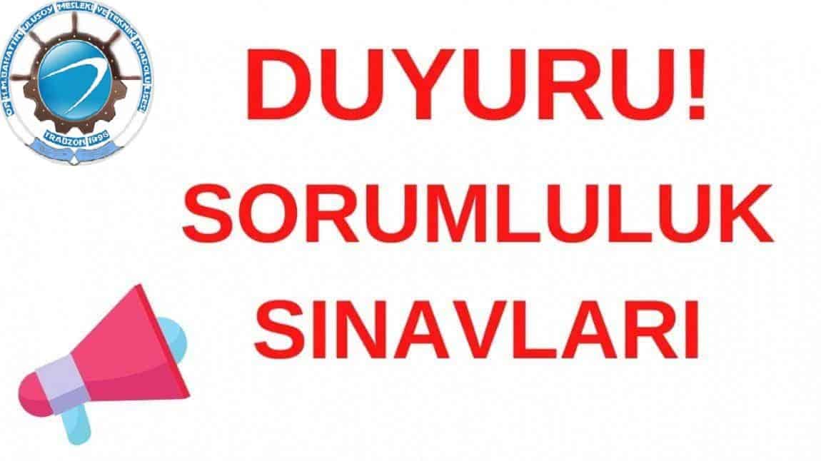Haziran Dönemi Sorumluluk Sınav Takvimi